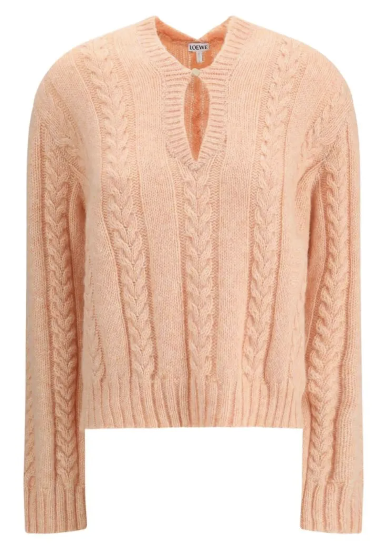 누난 내게 여자야 한혜진 케이블 니트는 전통적인 케이블 패턴을 바탕으로 탄탄하게 제작되었습니다. 입체감이 살아있는 정교한 짜임은 로에베의 장인정신을 엿볼 수 있는 부분이며, 밋밋한 니트와는 차원이 다른 고급스러움을 선사합니다. 특히, V넥 아래의 키홀(keyhole) 디테일은 이 로에베 케이블 니트에 현대적인 감각을 더하는 위트 있는 포인트입니다. - 여리여리한 실루엣을 만드는 V넥 라인