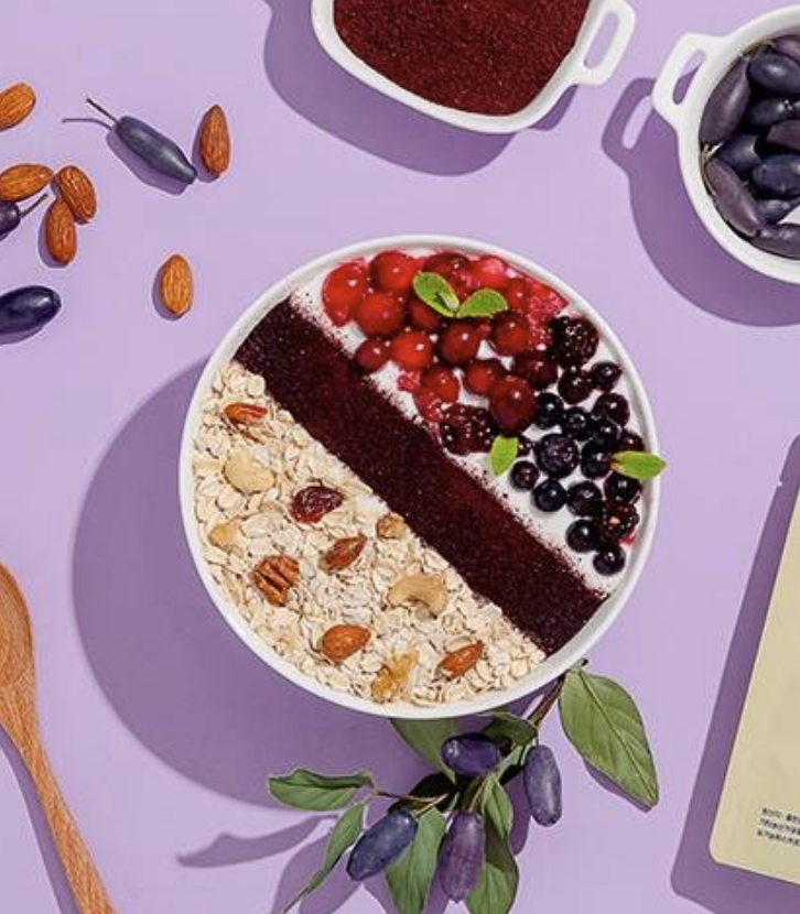 탄산수에 박서진 유기농 하스카프 베리 가루를 넣고 꿀이나 시럽, 레몬즙을 취향껏 섞어주면 홈메이드 카페 음료가 탄생합니다. 나른한 오후, 기분 좋은 활력을 선사할 것입니다. - 든든한 보랏빛 스무디
