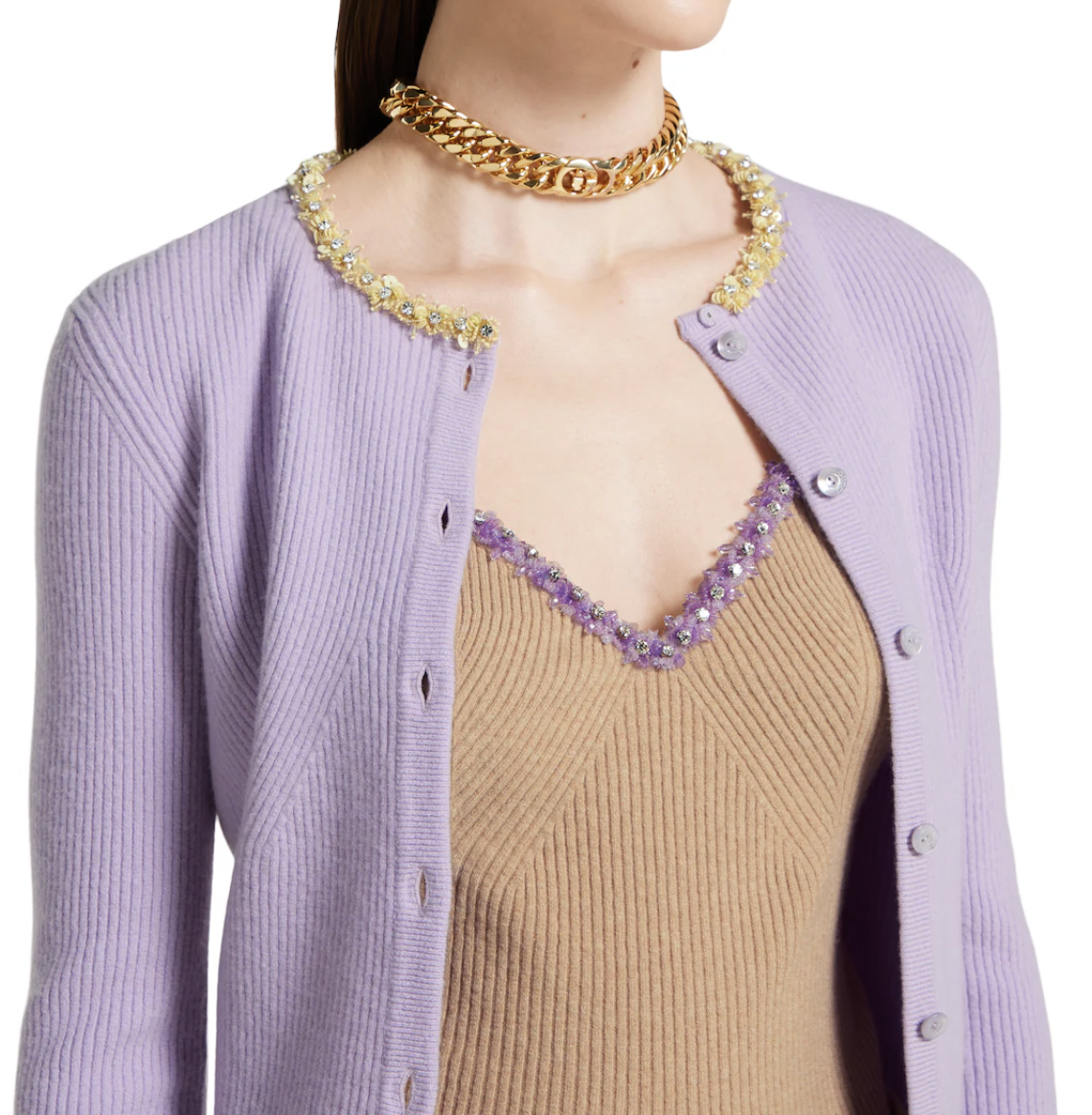 꿈결 같은 라일락 컬러와 크리스탈 자수의 완벽한 조화