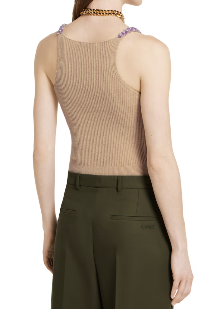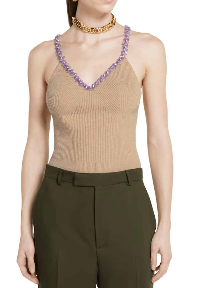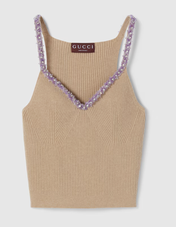 싱어게인 4회 태연 옷 스타일링의 완성도를 높인 숨은 공신, 바로 가디건 안에 이너로 착용한 니트 탑입니다. 이 제품 역시 같은 구찌(GUCCI) 2025 프리폴 컬렉션의 '자수 장식의 리브 펠트 울 탑'입니다. 가디건과 완벽한 '니트 온 니트' 스타일링을 선보이며, 계산된 듯 자연스러운 럭셔리 룩을 완성한 바로 그 싱어게인 태연 니트입니다.