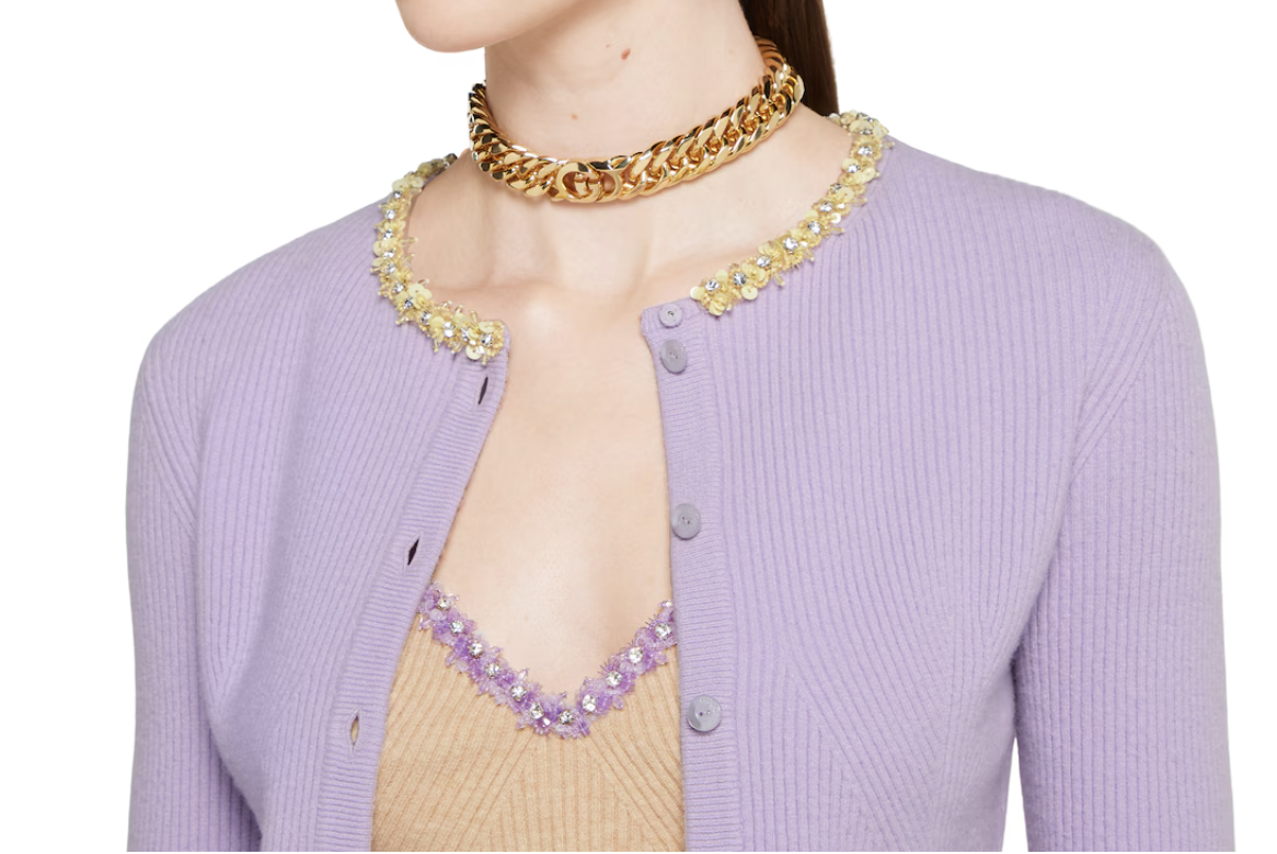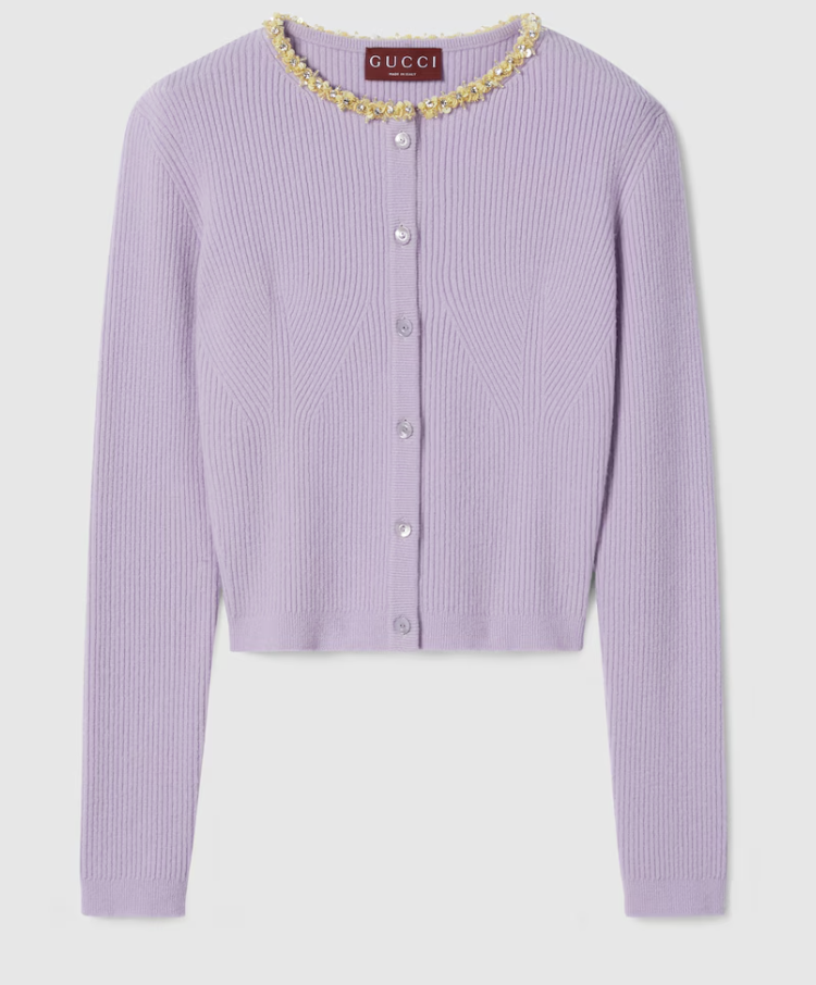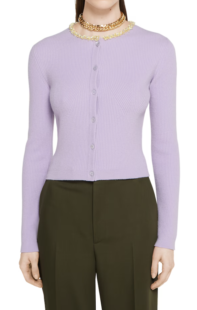 싱어게인 태연 옷: 구찌 리브 펠트 울 가디건 (라일락)