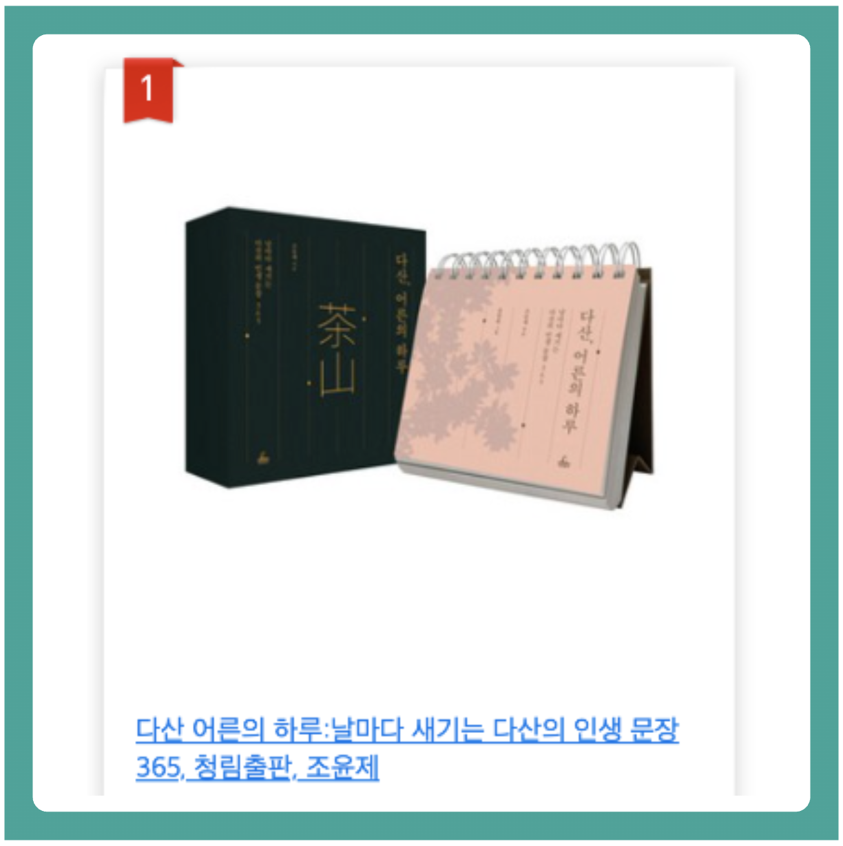 - 만년 일력 형식: 날짜만 표기되어 있어 연도에 구애받지 않고 언제든 시작할 수 있습니다. 새해 다짐뿐만 아니라, 새로운 시작이 필요한 어느 날이든 이 다산 정약용 일력의 첫 페이지를 넘기면 됩니다.